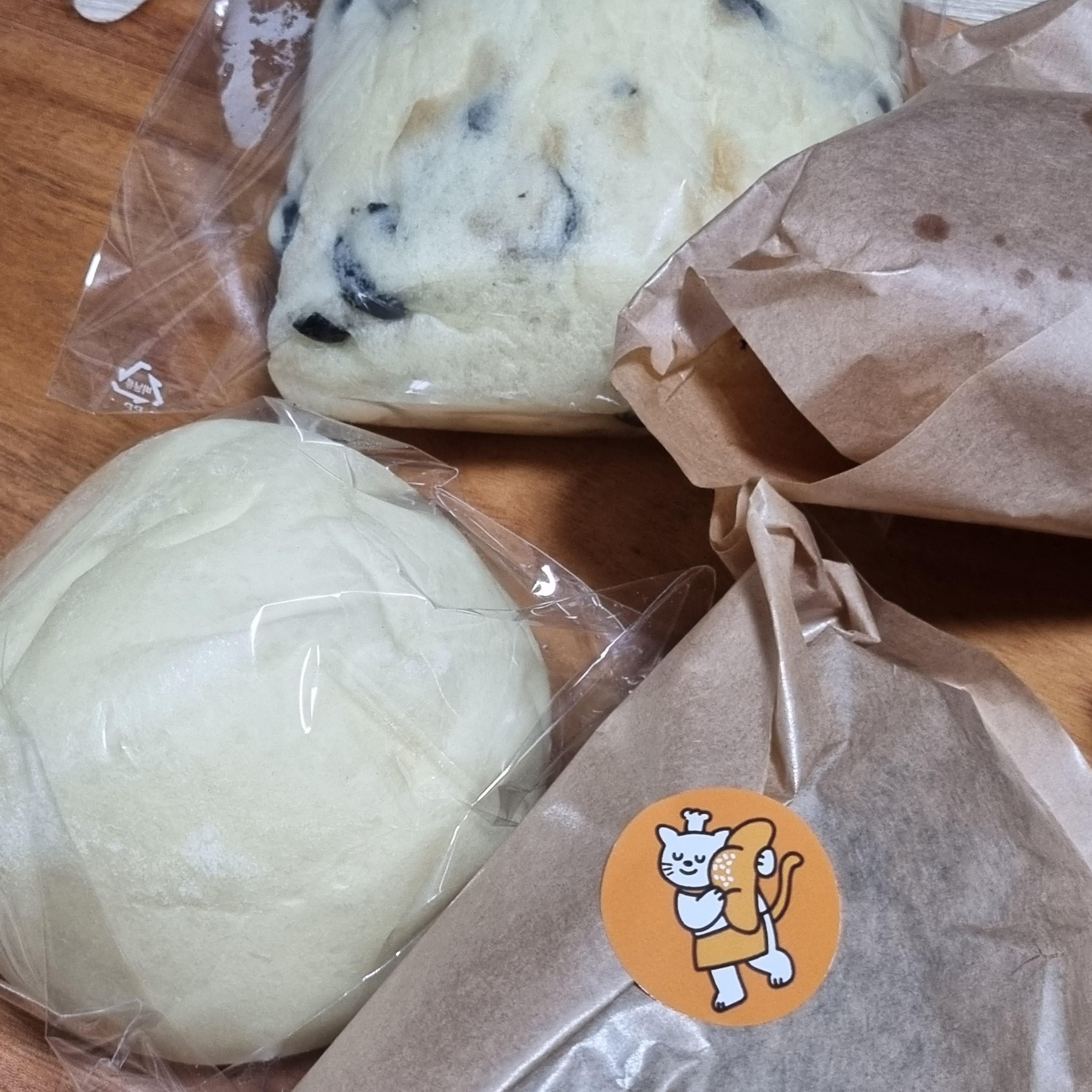 붙여있는 포장된 빵을 보니